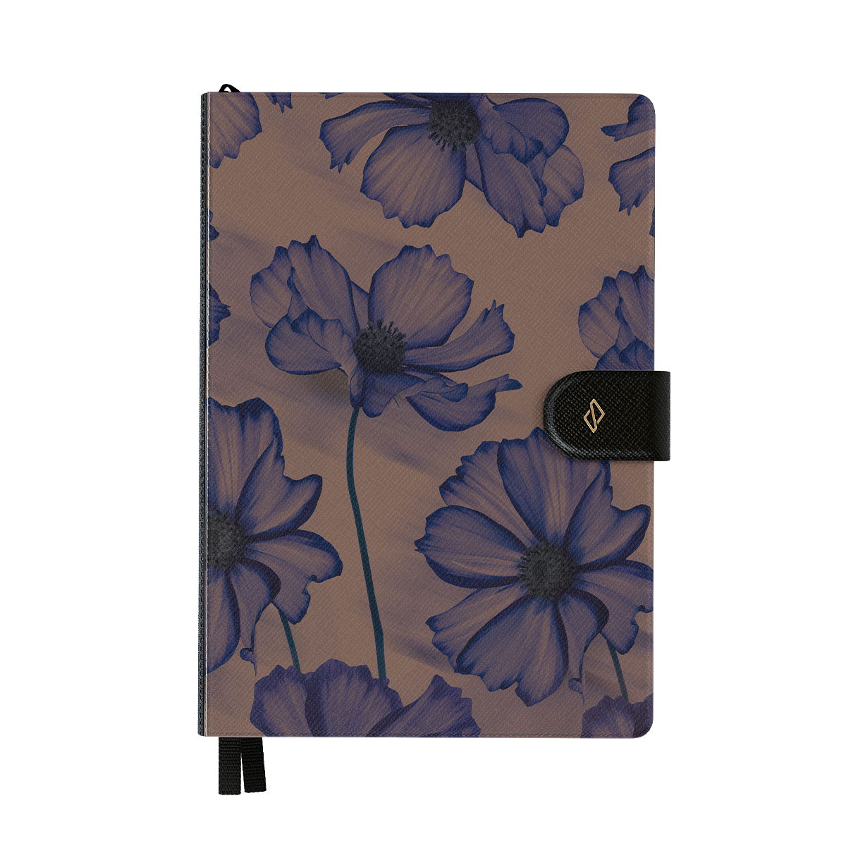 日付が書かれていないミニマリストなデザインで、手帳・スケジュール帳・ダイアリーとして使えます。表紙のハードカバーには、心地よい手触りのヴィーガンサフィアーノレザーを使用。スリムな磁気べえると付きの頑丈な手帳で、コーヒーをこぼしたり、うっかり手帳を落としたりしても安心です。