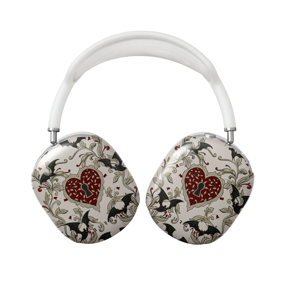このデザインの特徴:ハート、鍵、コウモリ、ゴシック模様