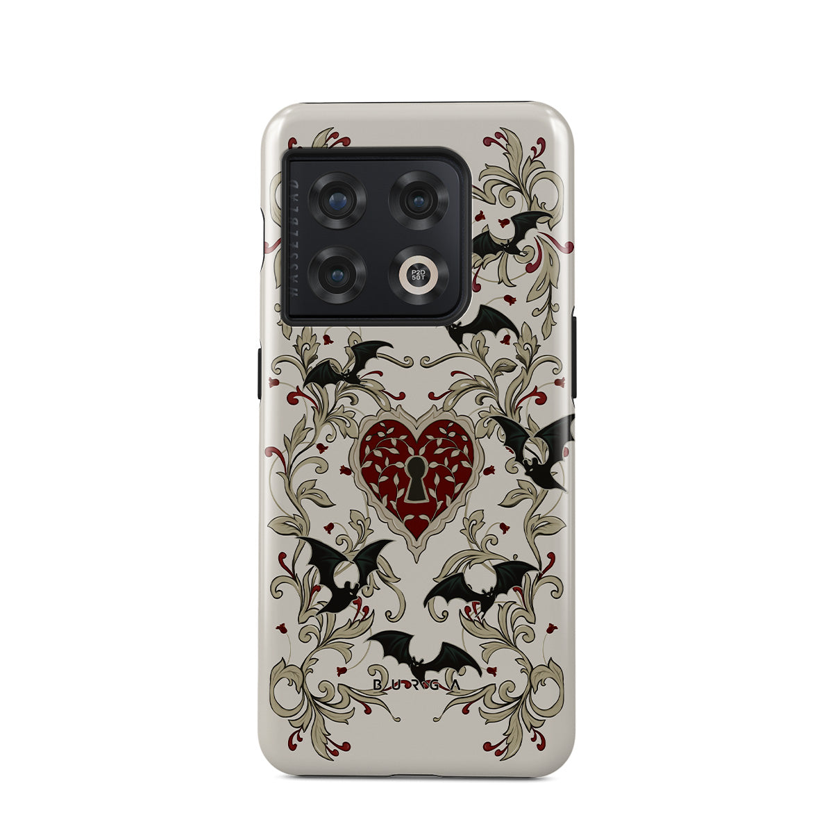 このデザインの特徴:ハート、鍵、コウモリ、ゴシック模様