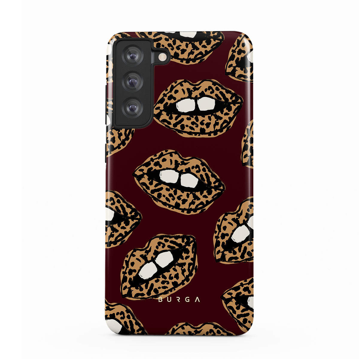 このデザインの特徴:ヒョウ柄、唇、開いた唇、色付きの唇