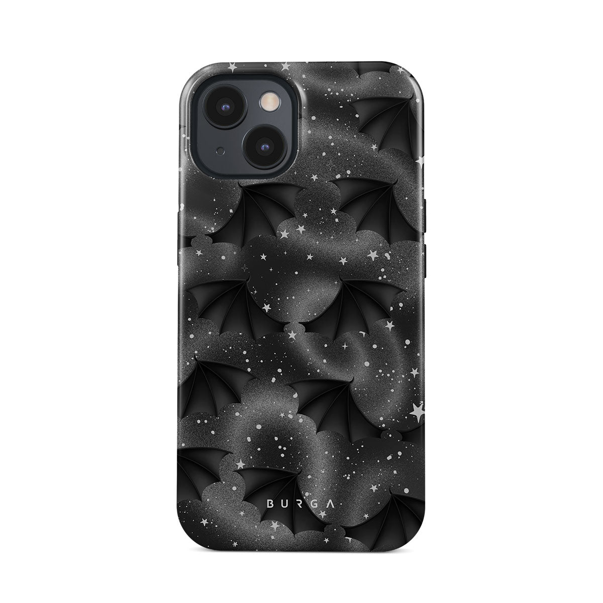 このデザインの特徴:コウモリの翼、星、神秘的な渦、黒い空