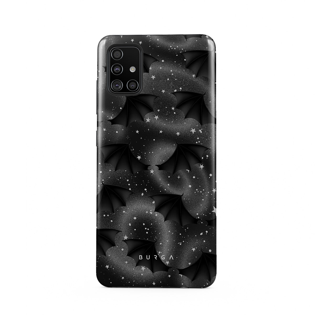 このデザインの特徴:コウモリの翼、星、神秘的な渦、黒い空