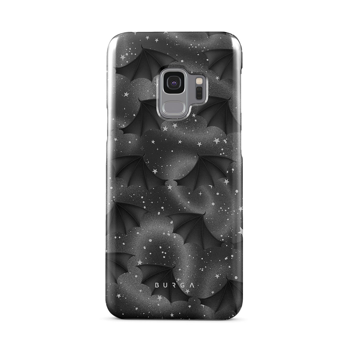 このデザインの特徴:コウモリの翼、星、神秘的な渦、黒い空