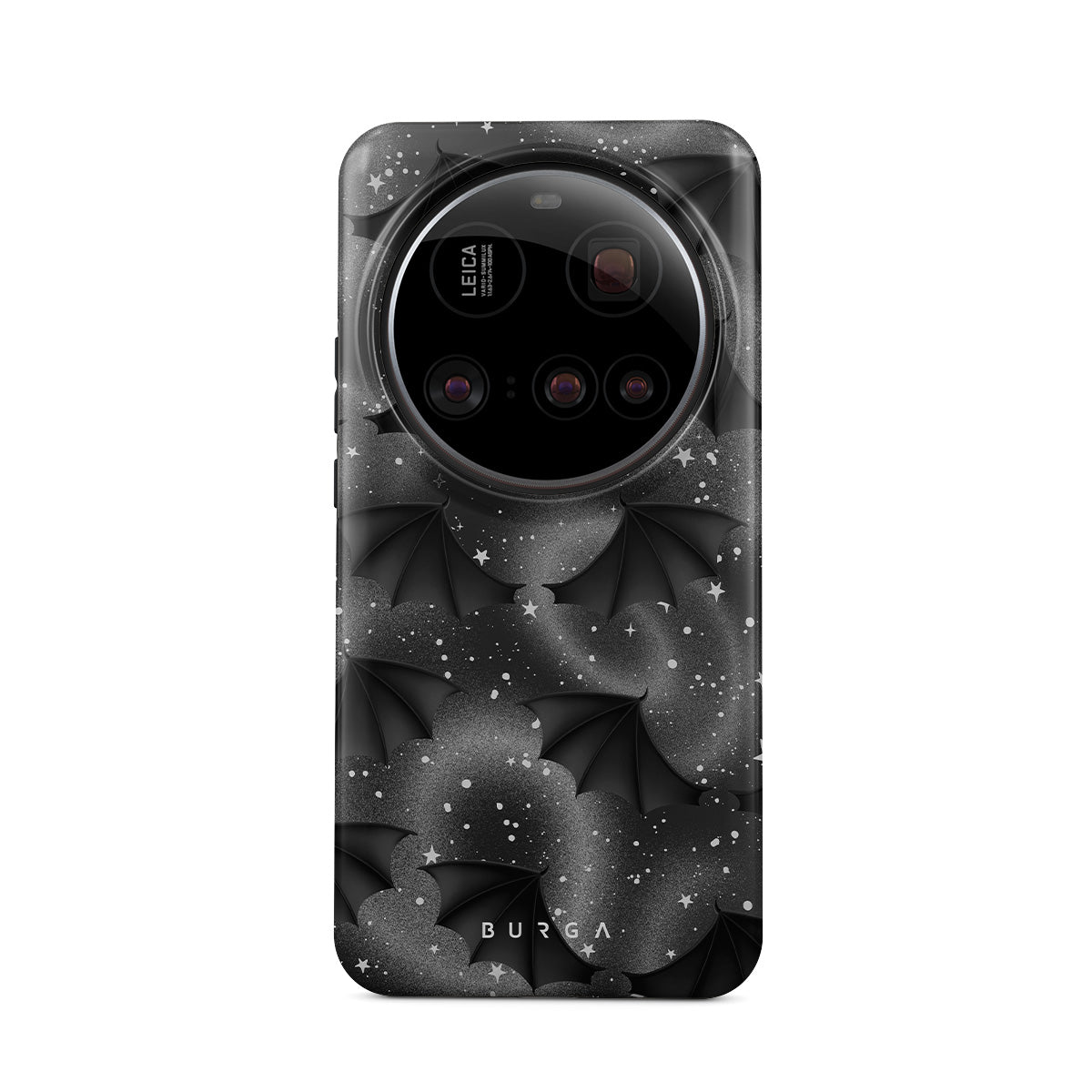 このデザインの特徴:コウモリの翼、星、神秘的な渦、黒い空