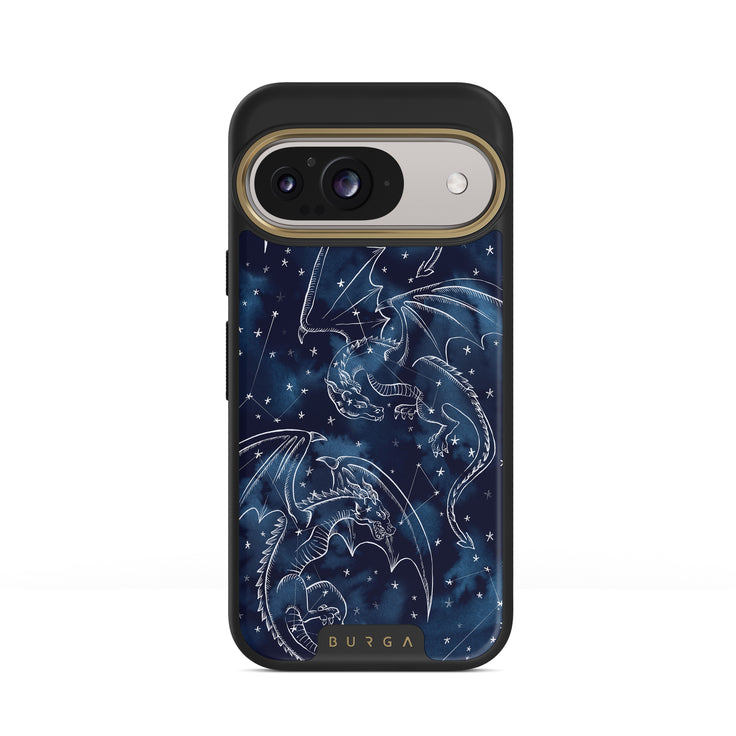 このデザインの特徴:ドラゴン、星、星座、暗い青い空