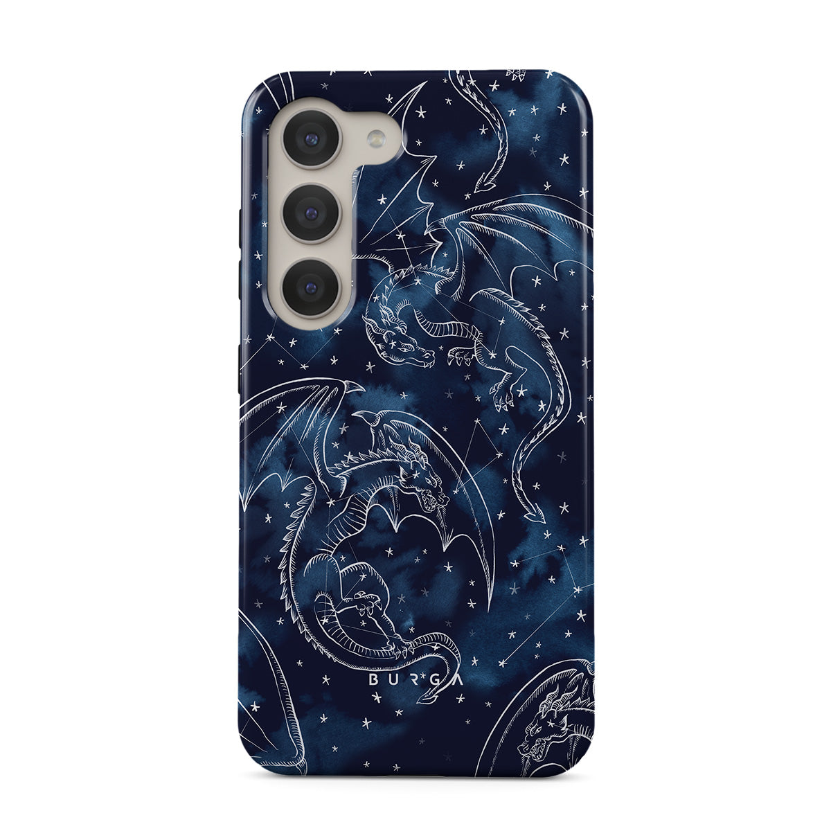 このデザインの特徴:ドラゴン、星、星座、暗い青い空